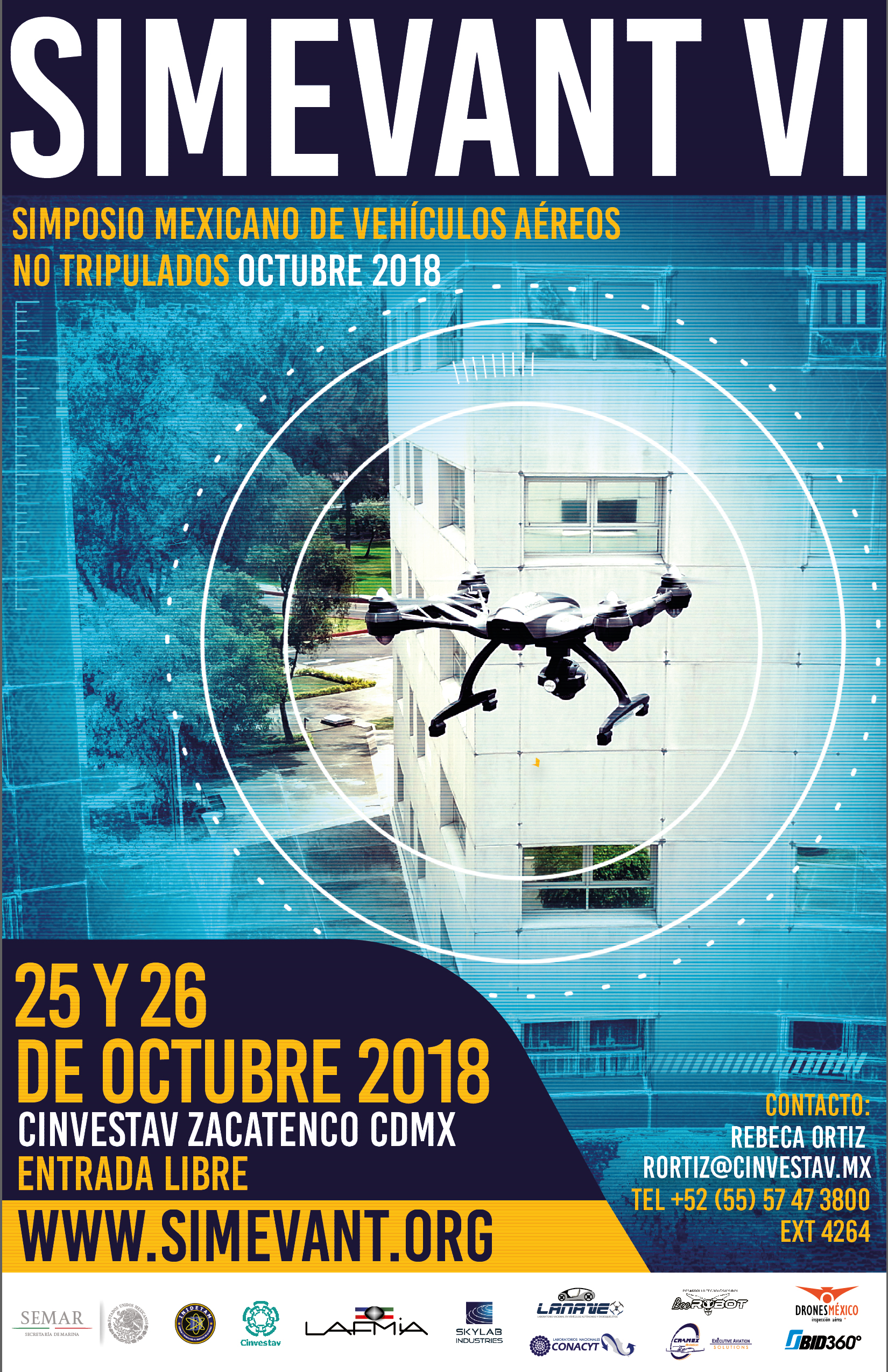 El 25 y 26 de Octubre del 2018 se realizó el VI Simposio Mexicano de Vehículos Aéreos No Tripulados en las instalaciones del CINVESTAV Zacatenco, CDMX.